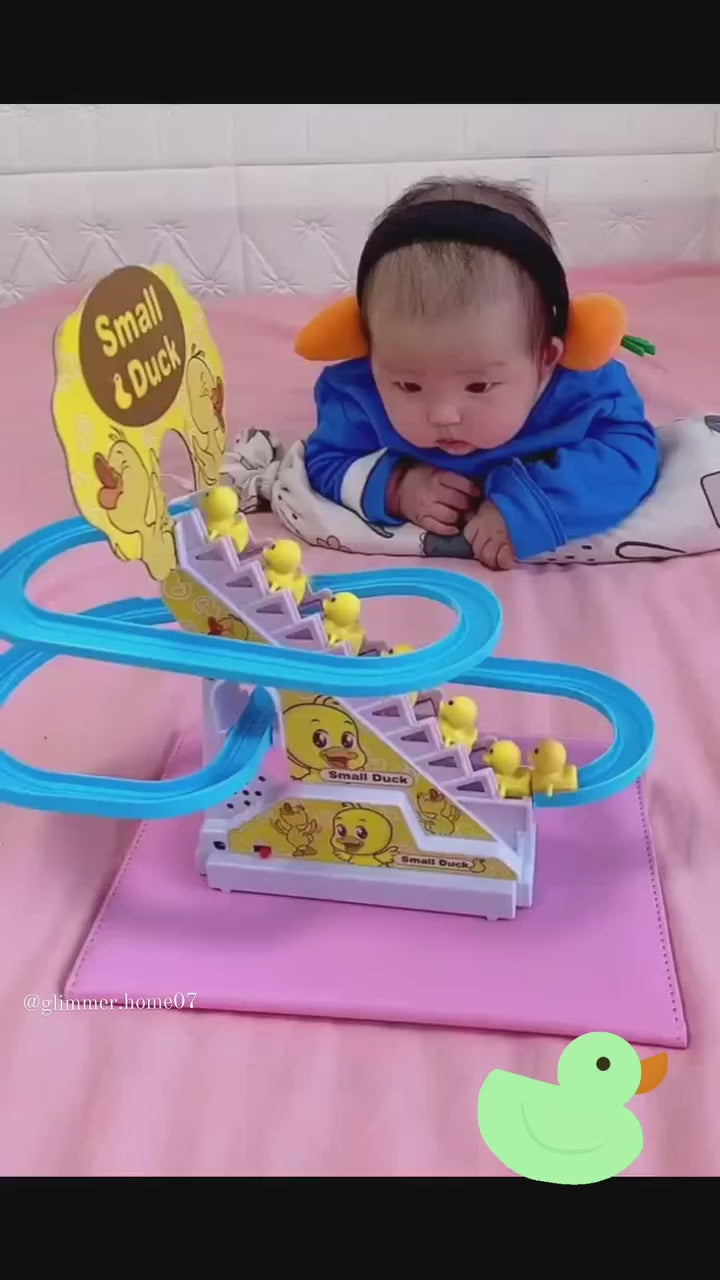 ★ Ending Point is Starting Point: With the escalator-like mechanism and the sliding tracks, these little ducks will back to the sarting point automatically after sliding down. Therefore, it can keep working until you stop it.; ★ Music & Light Function: Dynamic music will sound and shinning lights can be seen as the toy starts working, which makes the toy more funny and attracts kids' attention more easily.